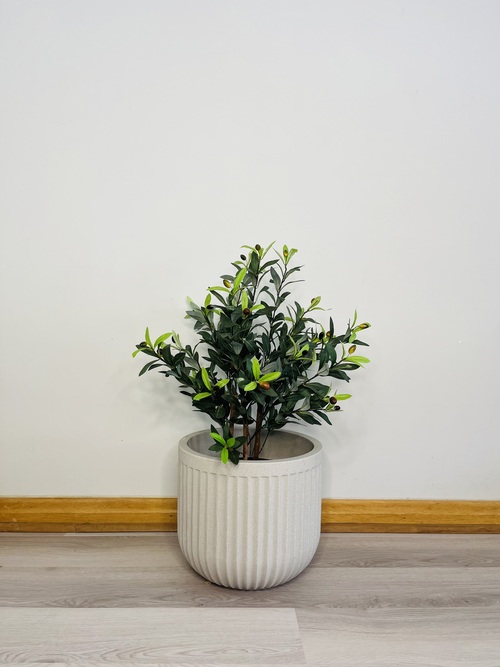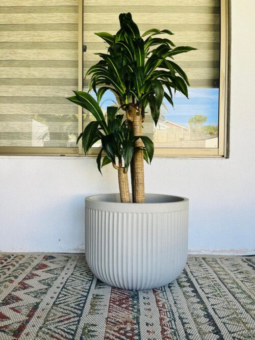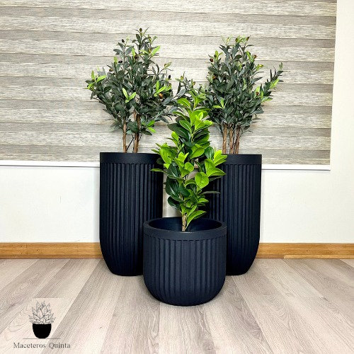 Macetero inspirado en columnas griegas, clásico y elegante. Disponible en dos tamaños. Su textura acanalada añade un toque sofisticado.
